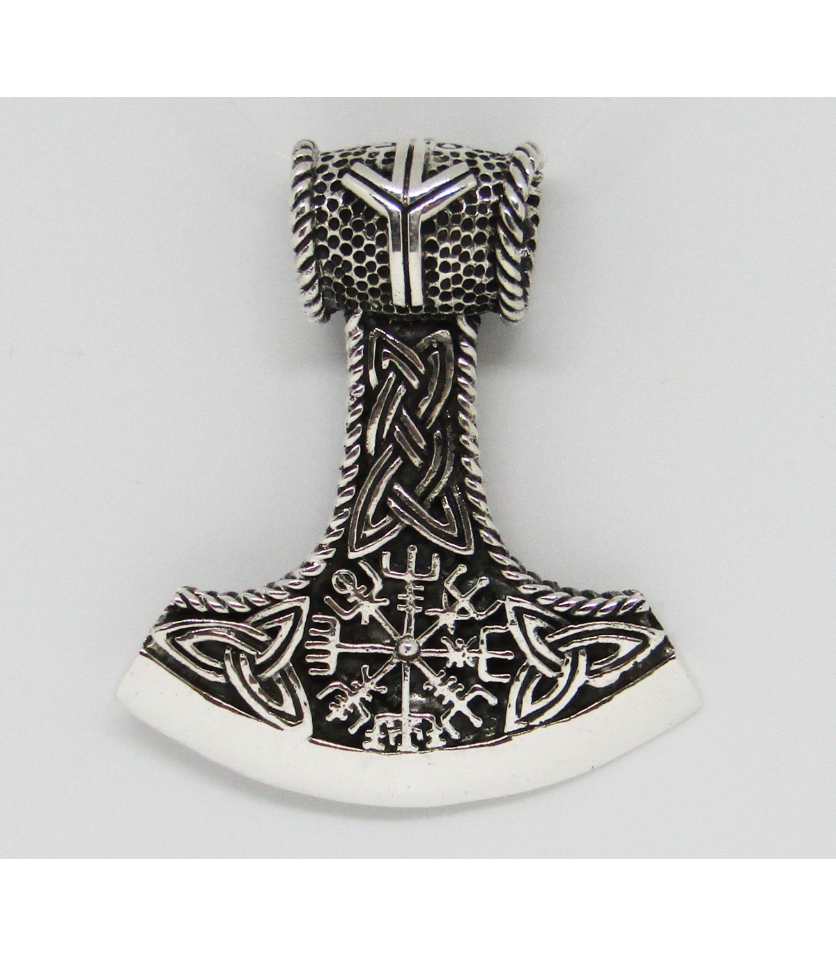 Colgante en plata de ley 925,con forma de martillo de thor y runas vikingas enmedio.
