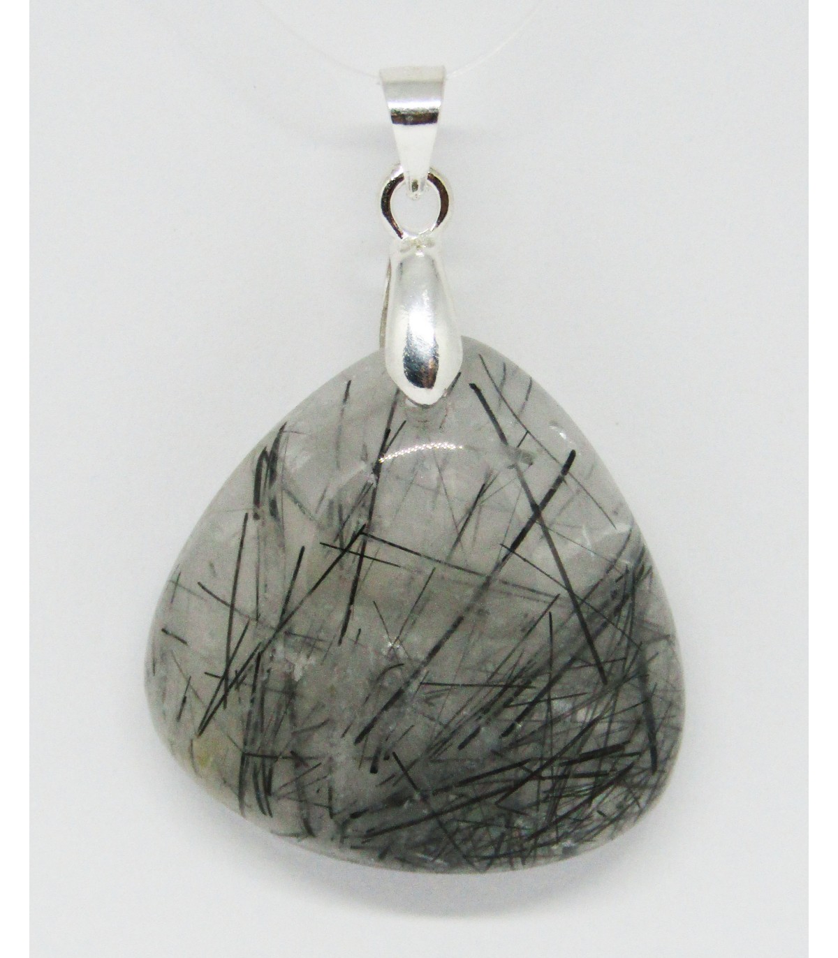 Colgante en cuarzo con turmalina en el interior y con cierre de plata de ley 925.