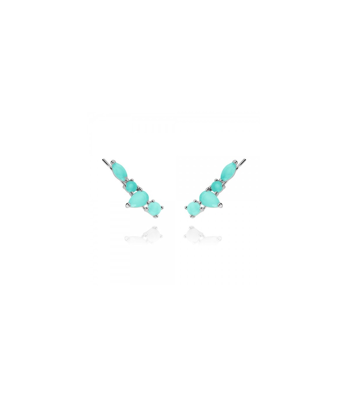 Pendiente trepador con piedras en plata de ley y chapado en oro.