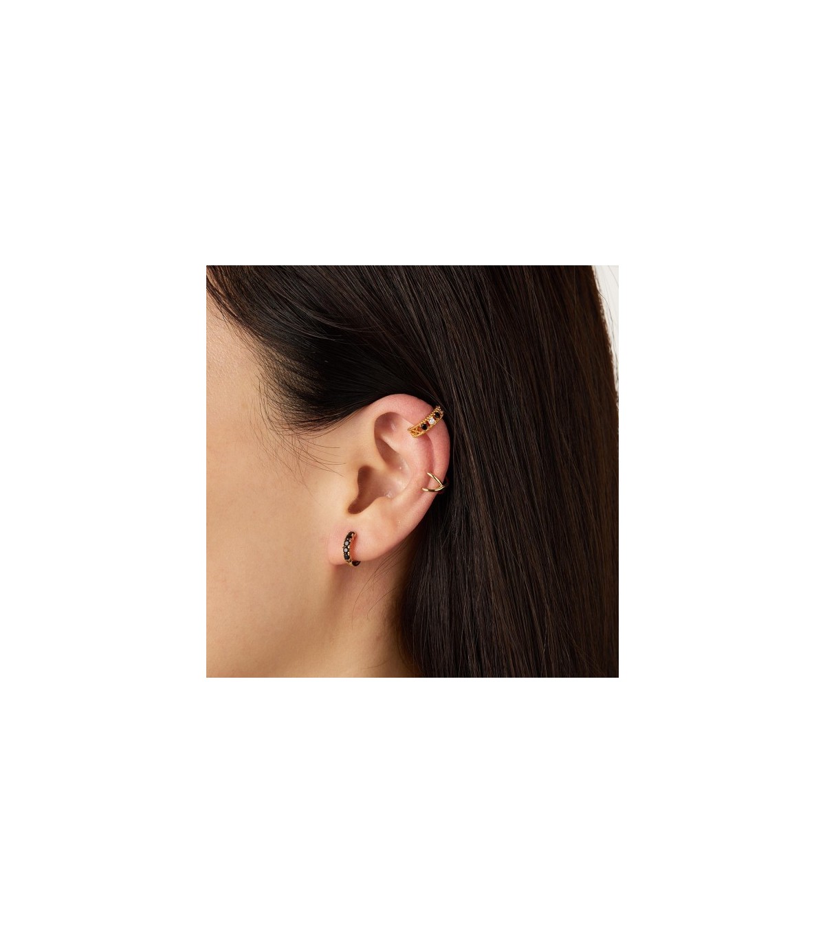 Aros en plata de ley 925 con circonitas blancas y negras y chapados en oro.