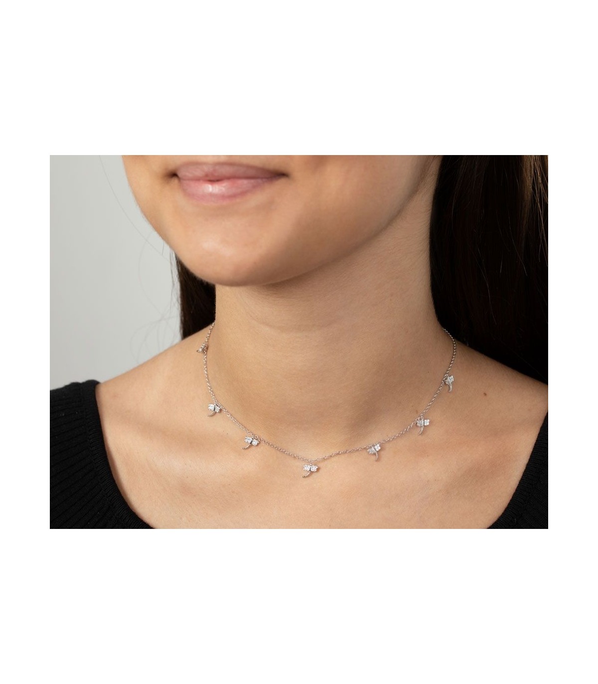 Gargantilla libelula en plata de ley 925 y chapao en oro con circonitas blancas o negras.