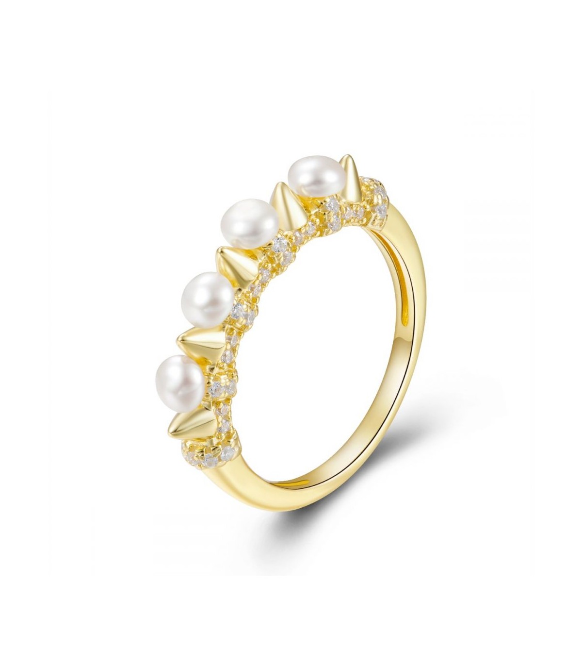 Anillo en plata de ley 925 y chapado en oro con perlas y circonitas.