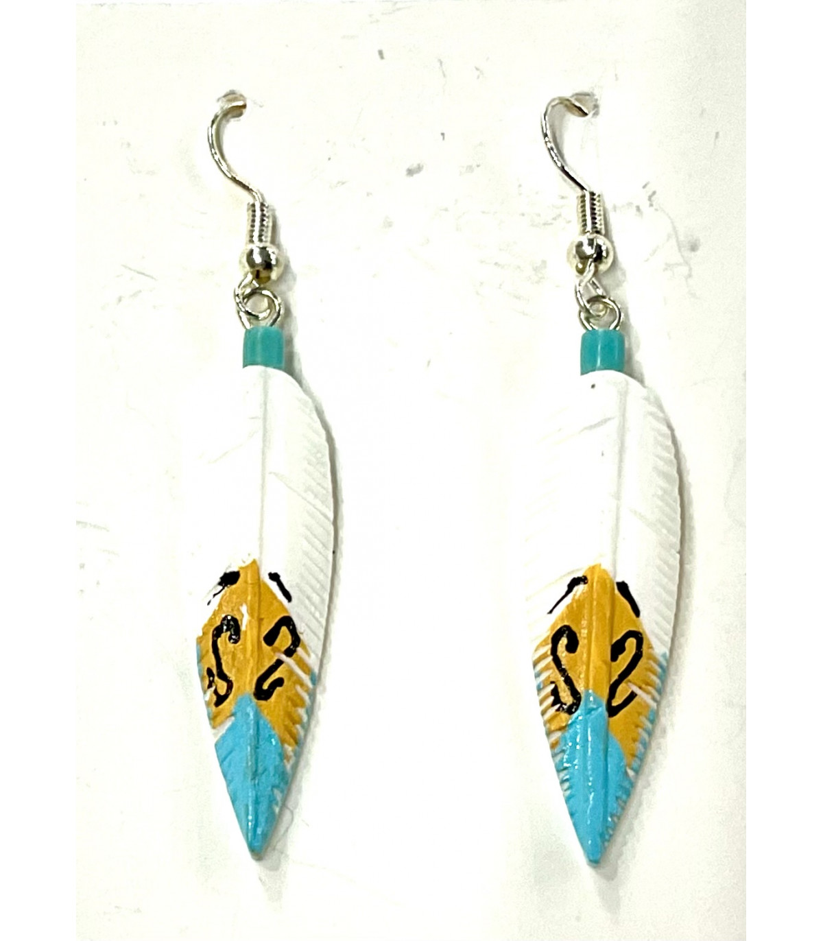 Pendientes pluma en plata de ley 925 Y concha de color. Medida largo 5,5cm.