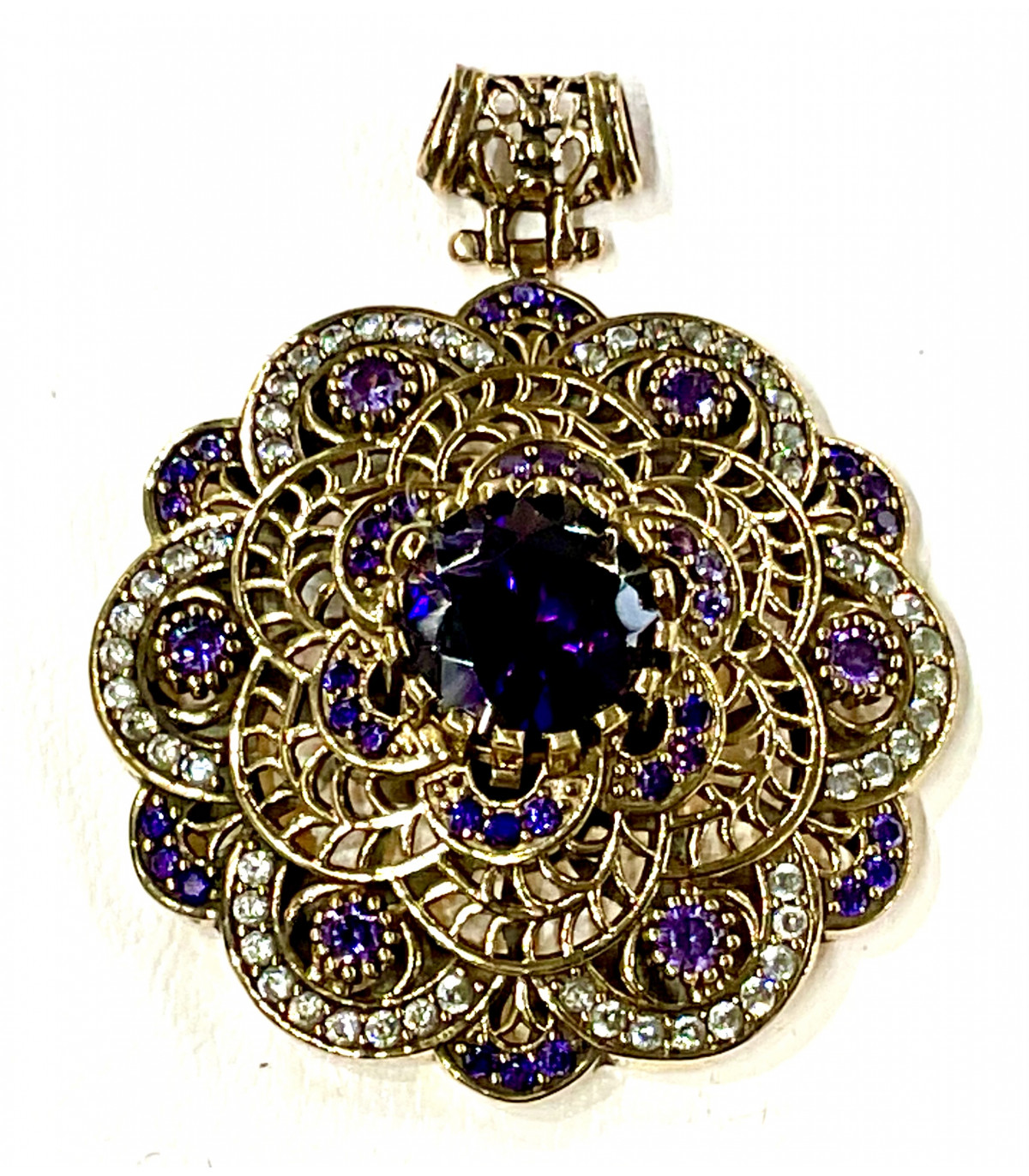 Colgante en plata de ley 925 Chapado en oro 18k con circonitas. Medida diámetro 4,7cm.