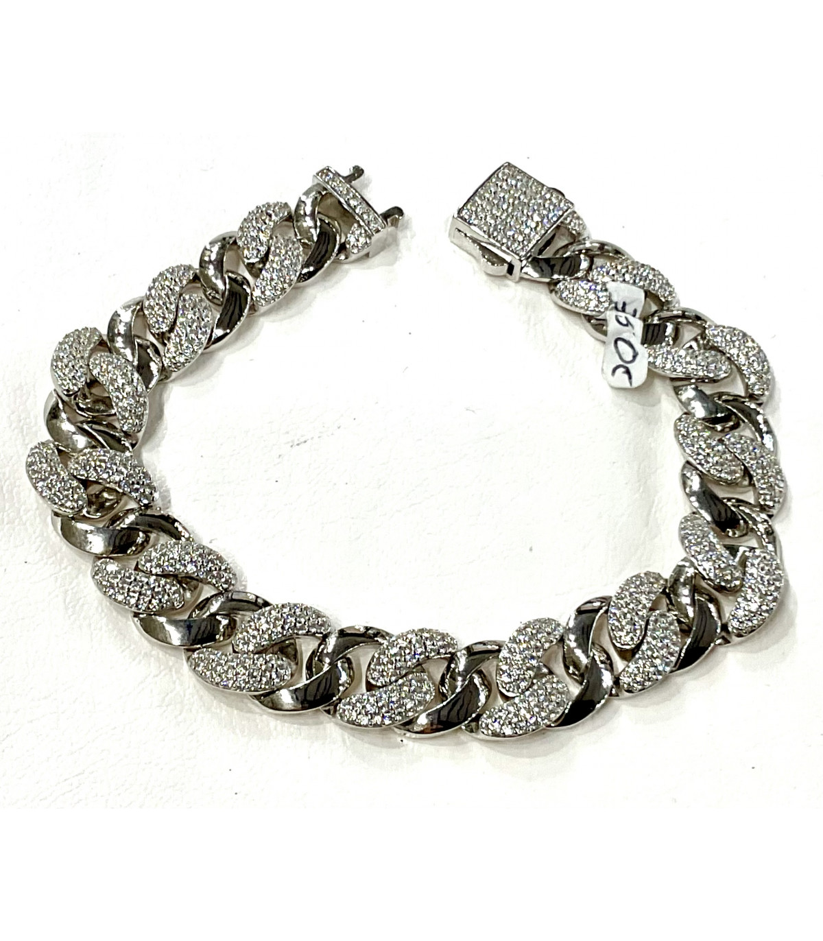 Pulsera en plata de ley 925 Con circonitas. Medidas largo x ancho 21,5 cm x 1,2 cm.