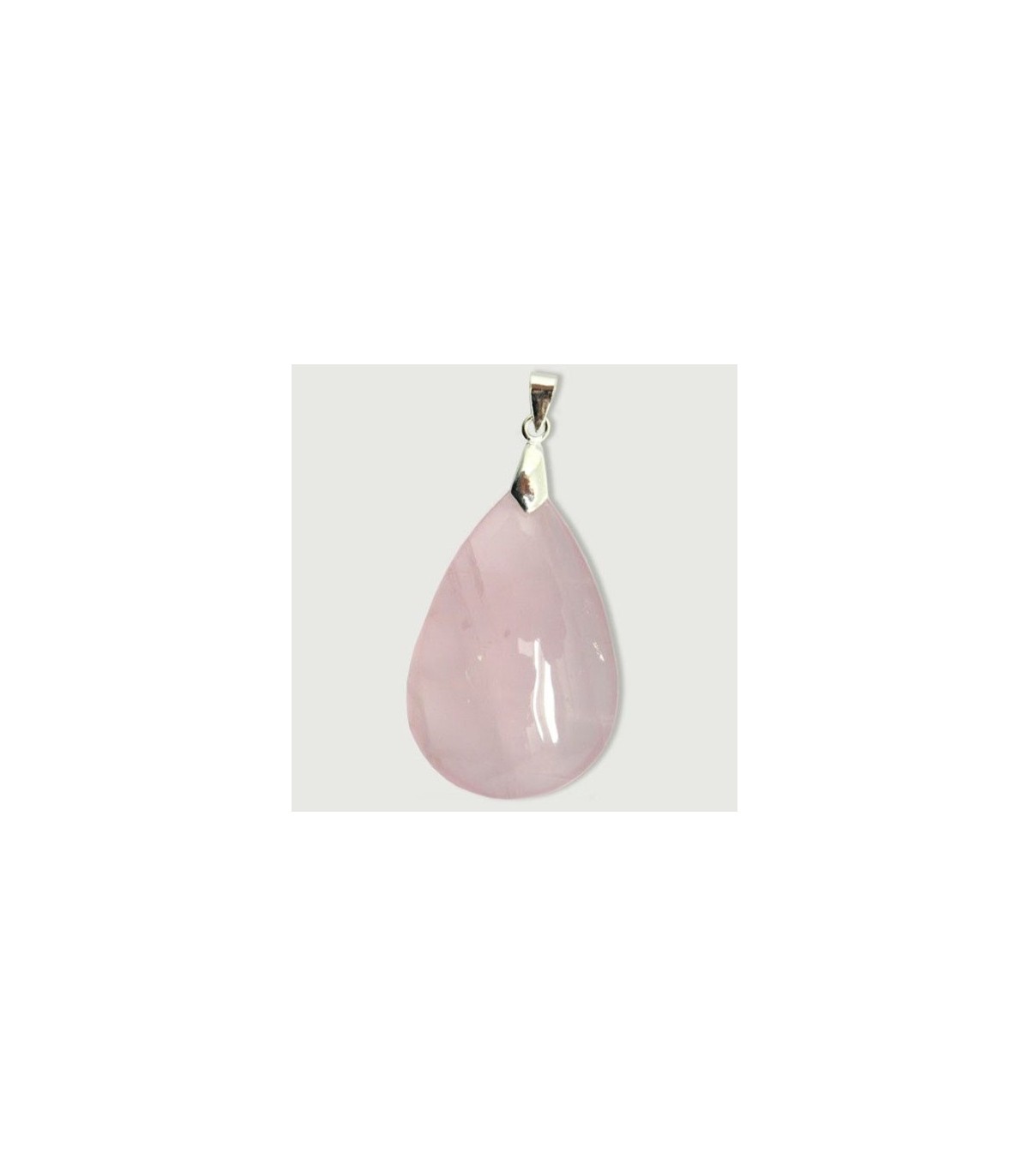 Colgante en forma de lagrima y de cuarzo rosa y con cierre en plata de ley 925.
