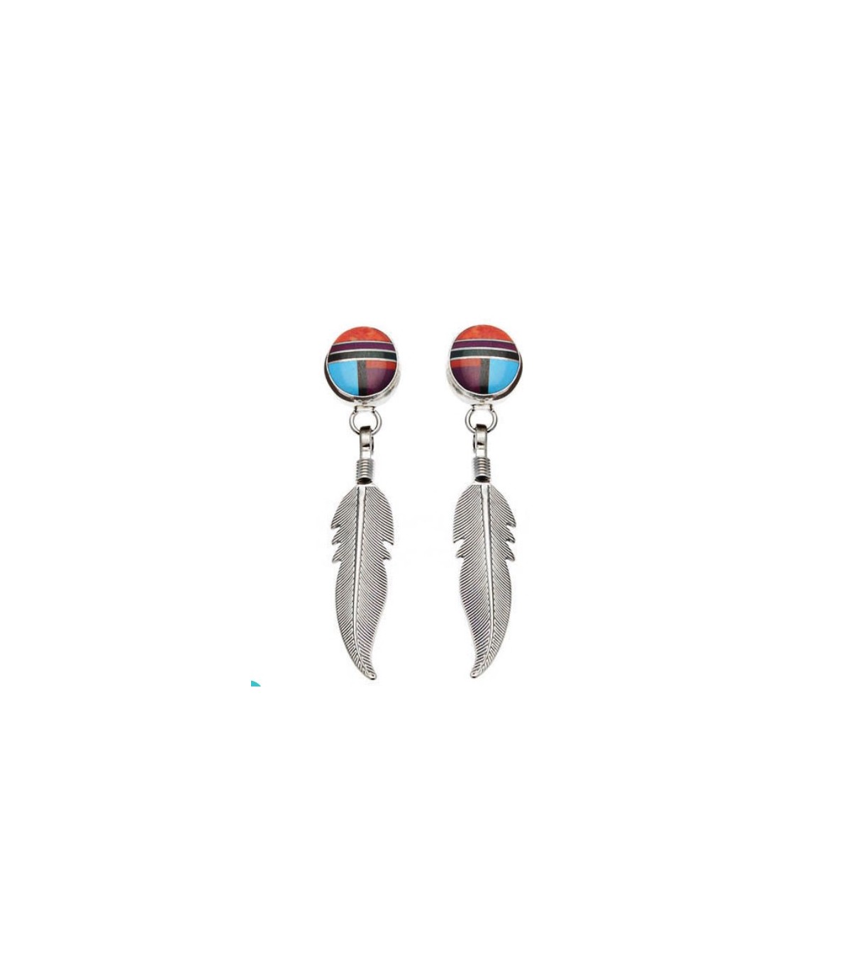 Pendientes en plata de ley 925,con turquesa de arizona,onix y coral.Hecho a mano por los indios americanos.