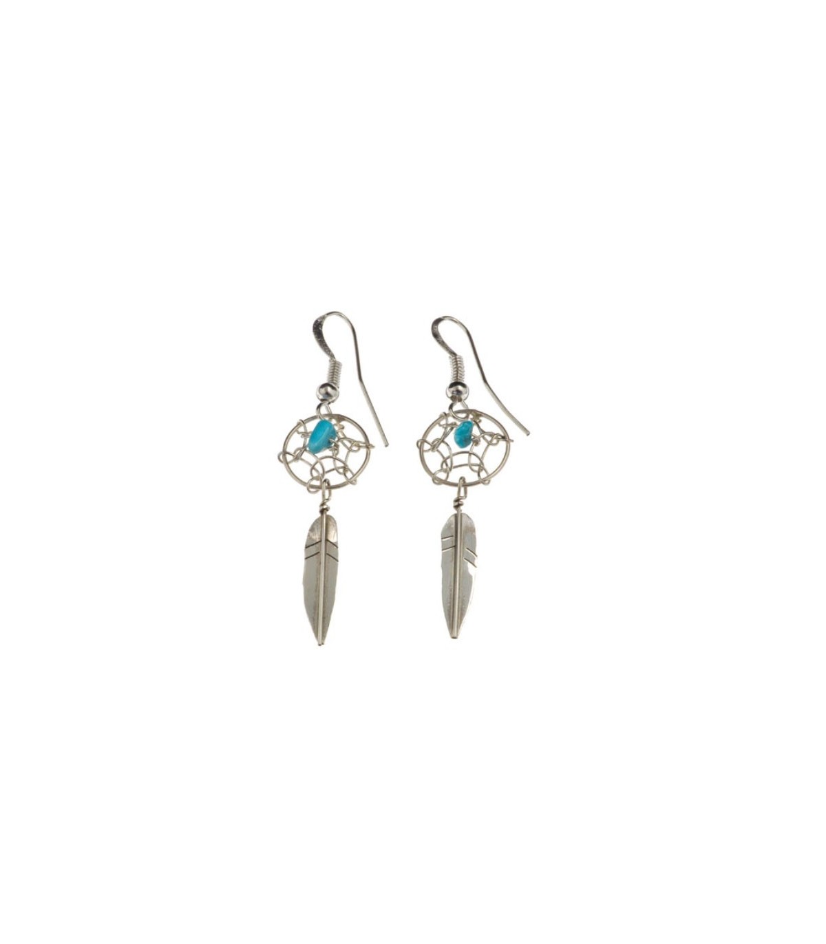 Pendientes en plata de ley 925,con turquesa de arizona.Hecho a mano por los indios americanos.