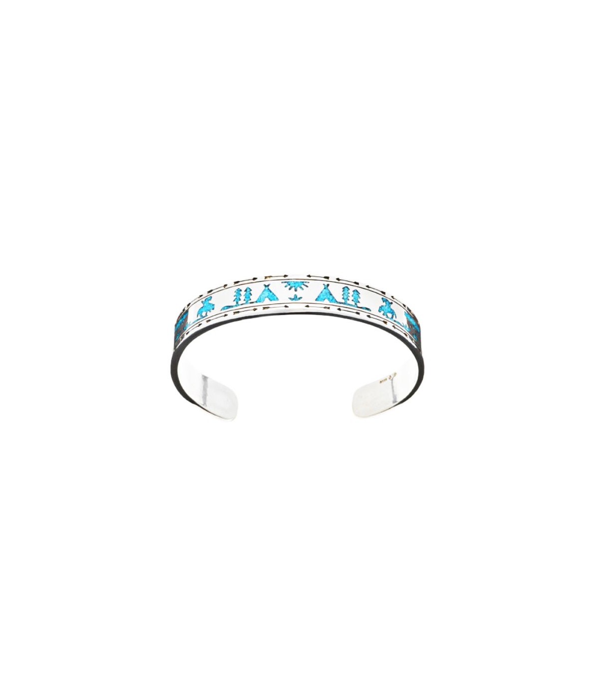 Pulsera rigida y abierta en plata de ley 925,con turquesas de arizona.Hecho a mano por los indios americanos.