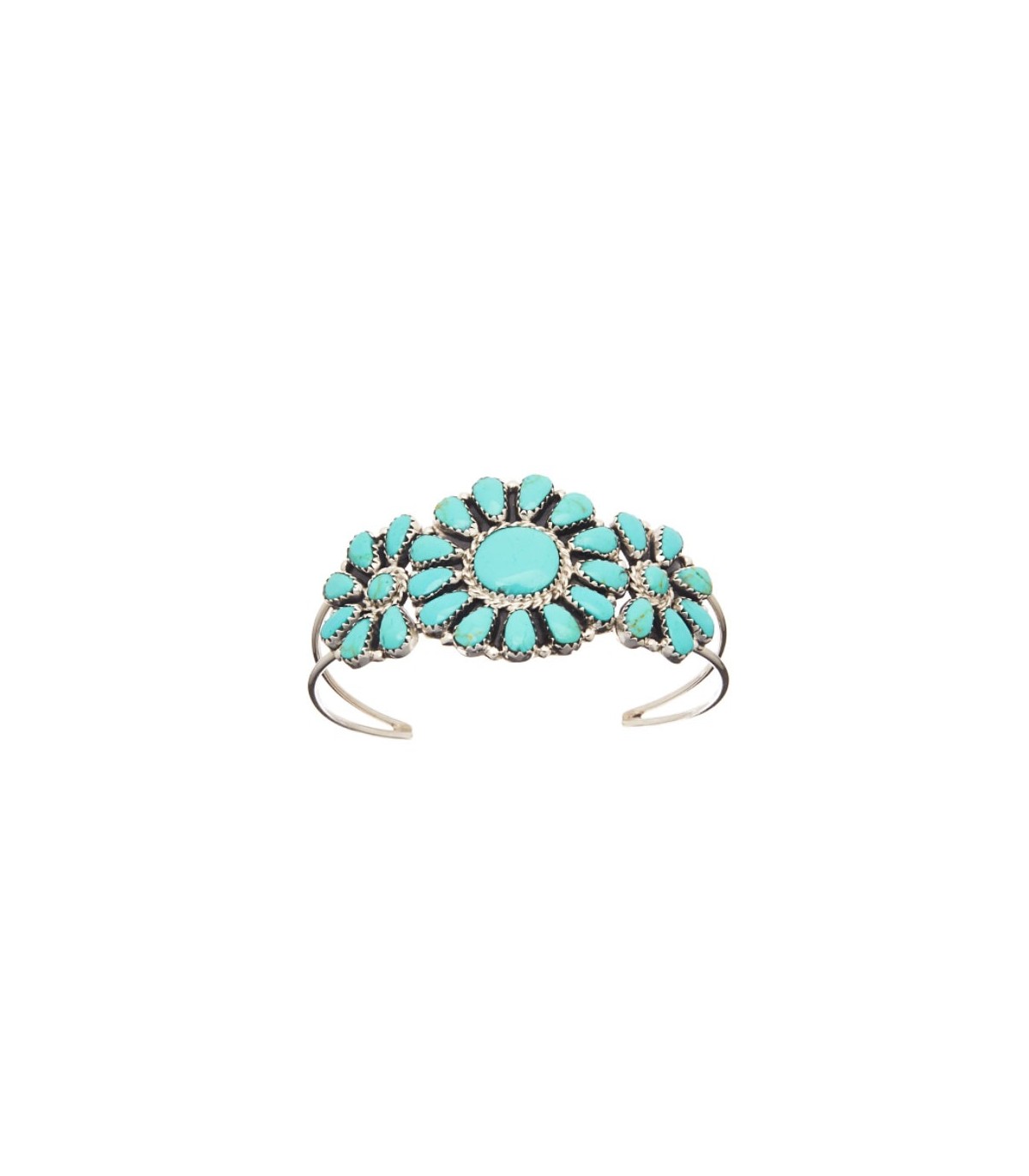 Pulsera rigida y abierta en plata de ley 925,con turquesas de arizona.Hecho a mano por los indios americanos.